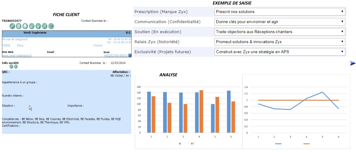 A travers un questionnaire à remplir par les commerciaux client par client, faites vous une idée objectve, secteur par secteur, métier par métier des potentiels de vos prospects, de vos clients. Ensuite, vous pourrez, par exemple, trier rapidement vos clients selon votre rapport avec eux pour cibler plus facilement vos visites.